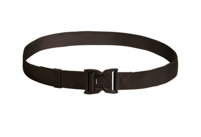 La boucle métallique est traitée avec une finition noire mate pour éviter les reflets, un détail crucial pour la discrétion opérationnelle. La sangle est volontairement rigide pour ne pas s’enrouler sur elle-même sous le poids de l’équipement, tout en restant suffisamment souple pour ne pas gêner la respiration ou les mouvements de flexion.